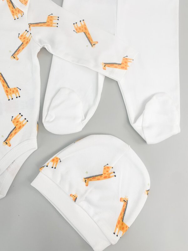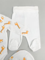 Salopeta baiat alba cu girafe - 3 piese