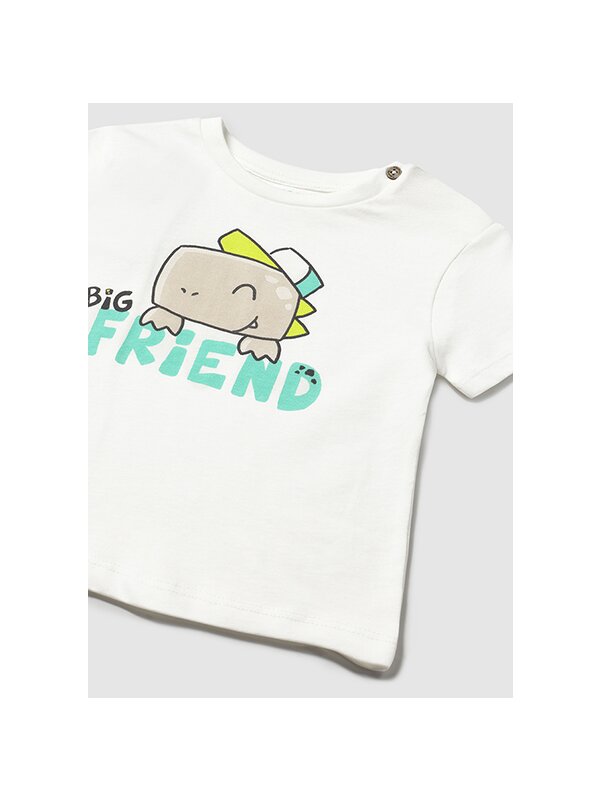 ✔ Tricou alb cu imprimeu cu dinozauri – realizat dintr-un material moale si placut la atingere, tricoul este usor de purtat si adauga un plus de culoare datorita imprimeului vesel si tematic.