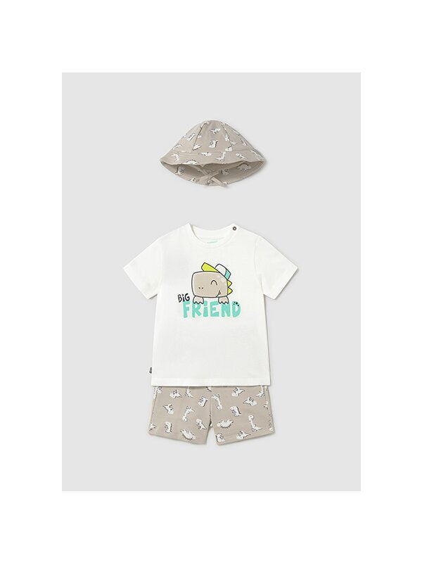 ✔ Pantaloni scurti crem cu imprimeu cu dinozauri – prevazuti cu elastic si snur reglabil in talie, ofera o potrivire perfecta si confort sporit. Buzunarele laterale adauga functionalitate.