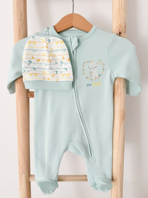 Pret unitar pe- Setul include o caciulita calduroasa, cu dublura, care protejeaza eficient impotriva vantului si frigului, asigurand ca bebelusul ramane confortabil si bine protejat.