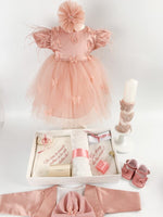 Toate piesele sunt aranjate cu grija intr-o cutie eleganta cu capac transparent, care pune in valoare fiecare detaliu si este ideala pentru pastrarea amintirilor din aceasta zi de neuitat.