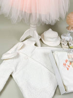 Pret unitar peSet complet pentru botez.Aveți-rochiță,paltonaș,pălărie+bendiță,papucei,iar pentru biserică(prosop șters bebe,prosop preot,pânza mir cu broderie,lumânare,fașă,cutie pentru păr,sticlă,săpun.Pentru alte produse nu ezitați să ne contactați!