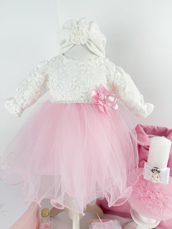 Pret unitar pe- Rochita de botez - Rochita este realizata din materiale calitative, captusite cu bumbac. Are maneci lungi, fermoar si cordon la spate pentru imbracare usoara.