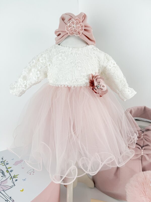 Siragul de perle cu floricica si fustita ampla din tul complet captusit asigura un aspect elegant si practic.