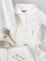 Optati pentru un trusou de botez complet pentru fetite, bine organizat si gata de utilizare. Comandati acum si economisiti timp cu un set complet!