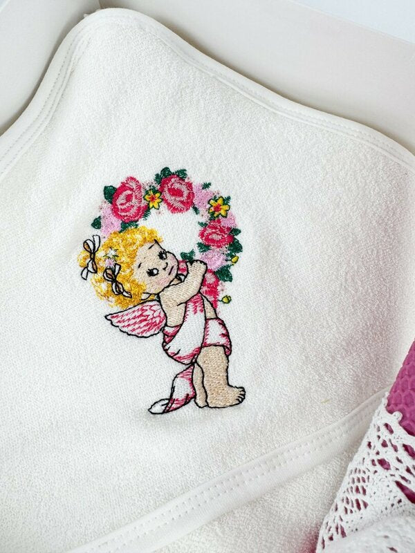 - Prosop moale pentru bebelus brodat cu un iingeras,