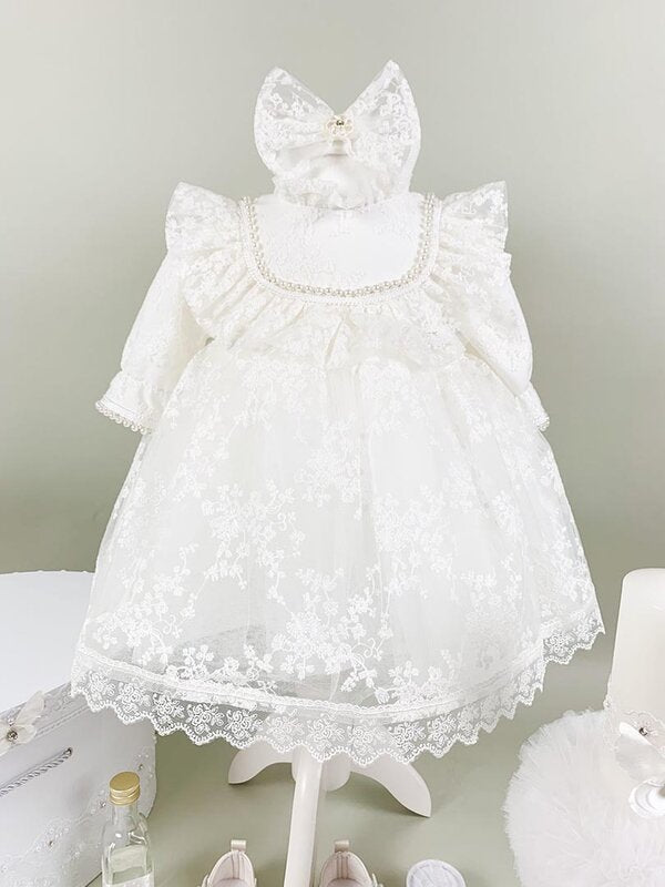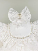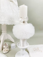 Pret unitar peTrusou pentru botez fetita cu rochie alba, balerini, cufar, prosoape , lumanare.