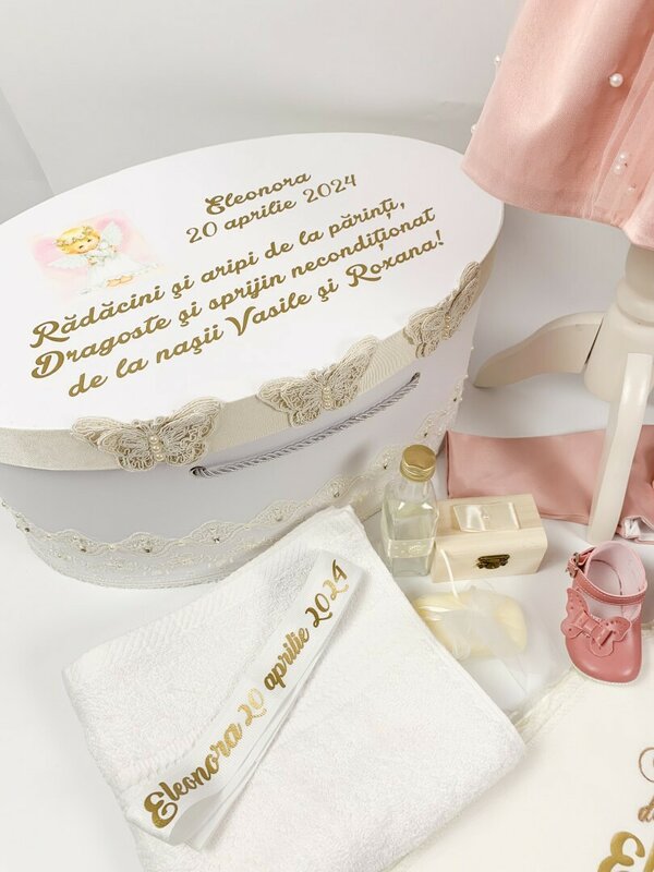 Da! Multe dintre produsele noastre pot fi personalizate cu nume, data botezului sau mesaje speciale. Puteti adauga detaliile in campurile dedicate de pe pagina fiecarui produs inainte de a adauga in cos.