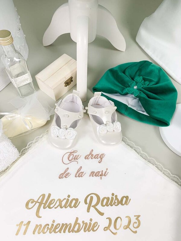 Trusoul a fost pregatit cu grija pentru ceremonia de botez si include:
