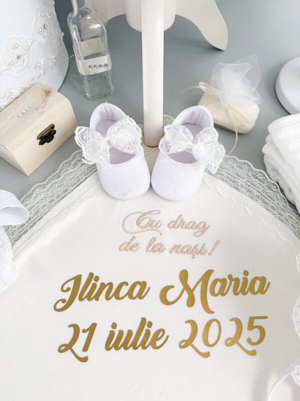 Da! Multe dintre produsele noastre pot fi personalizate cu nume, data botezului sau mesaje speciale. Puteti adauga detaliile in campurile dedicate de pe pagina fiecarui produs inainte de a adauga in cos.