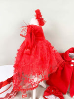 - Rochita eleganta ce straluceste intr-o nuanta de rosu vibrant, aducand un aer festiv si vesel. Partea superioara din catifea ofera rochitei un aspect placut la atingere. Fusta ampla din tul cu broderii adauga un element de eleganta. Manecile lungi decorate cu pene aduc o nota de finete si sunt perfecte pentru vremea rece.