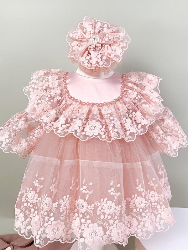 - Rochita roz pudra - decorata cu numeroase floricele si perlute, straluceste de frumusete si delicatete.