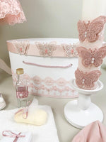 Toate aceste elemente sunt ambalate cu grija intr-o cutie alba si spatioasa, personalizata cu dantela subtila si fluturasi, menita sa pastreze amintirea acestei zile deosebite.