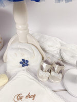 Produs in Romania cu dragoste si atentie la detalii, setul Luiza este alegerea perfecta pentru a face din ceremonia de botez un eveniment memorabil si elegant.