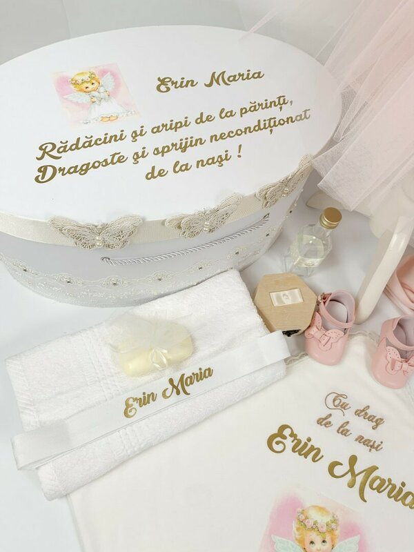 Da! Multe dintre produsele noastre pot fi personalizate cu nume, data botezului sau mesaje speciale. Puteti adauga detaliile in campurile dedicate de pe pagina fiecarui produs inainte de a adauga in cos.