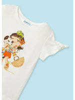 • Tricoul alb, realizat dintr-o combinatie de 95% bumbac si 5% elastan - este o alegere ideala pentru zilele calduroase. Cu un decolteu rotund clasic si maneci scurte, acesta este imprimat cu un model jucaus.