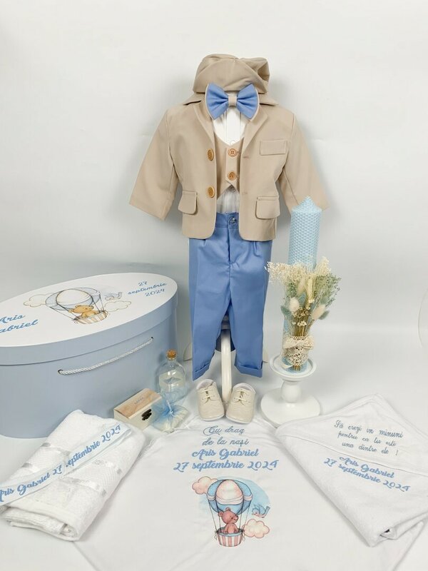 Comandati acum aceasta tinuta completa pentru botez si oferiti micutului dumneavoastra un outfit rafinat si confortabil, perfect pentru o zi de neuitat!