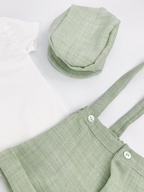 ✔ Pantaloni scurti verde deschis cu bretele – Lejeri si comozi, realizati dintr-un material antialergic, perfecti pentru zilele calduroase. Elasticul din talie asigura libertate de miscare si confort sporit.