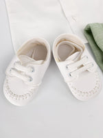 ✔ Botosei albi cu sireturi – Captusiti cu bumbac 100% si realizati dintr-un material antialergic, sunt moi si confortabili, protejand piciorusele delicate ale bebelusului.