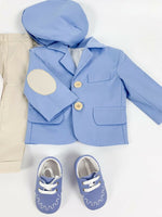 - Sacou albastru, confectionat din bumbac de cea mai inalta calitate, este atat elegant, cat si confortabil. Cu o captuseala fina pentru un confort sporit, micutul dumneavoastra se va simti minunat in acest sacou.