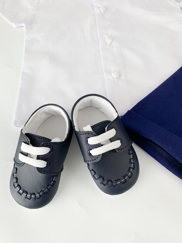 ✔ Botosei bleumarin cu sireturi – Captusiti cu bumbac moale, ofera protectie si suport picioruselor delicate, completand armonios tinuta.