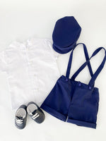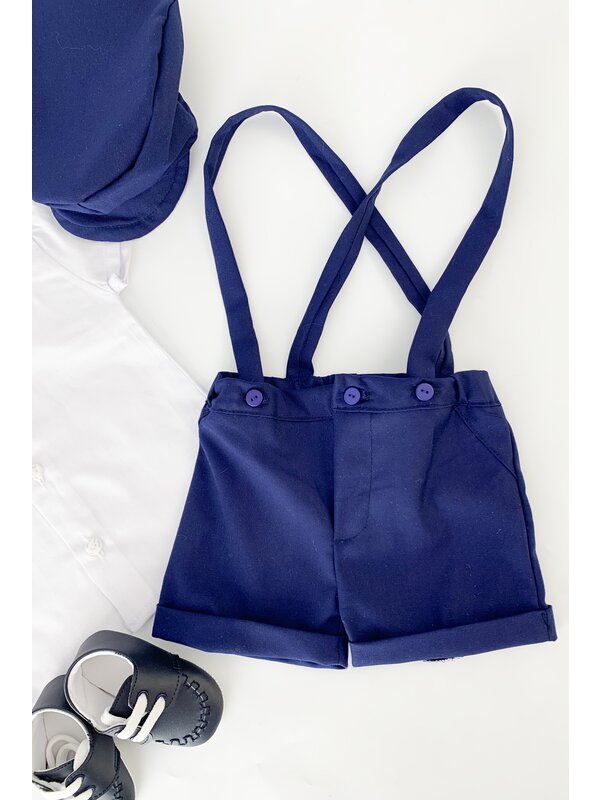 ✔ Pantaloni scurti bleumarin cu bretele – Lejeri si comozi, prevazuti cu elastic in talie.