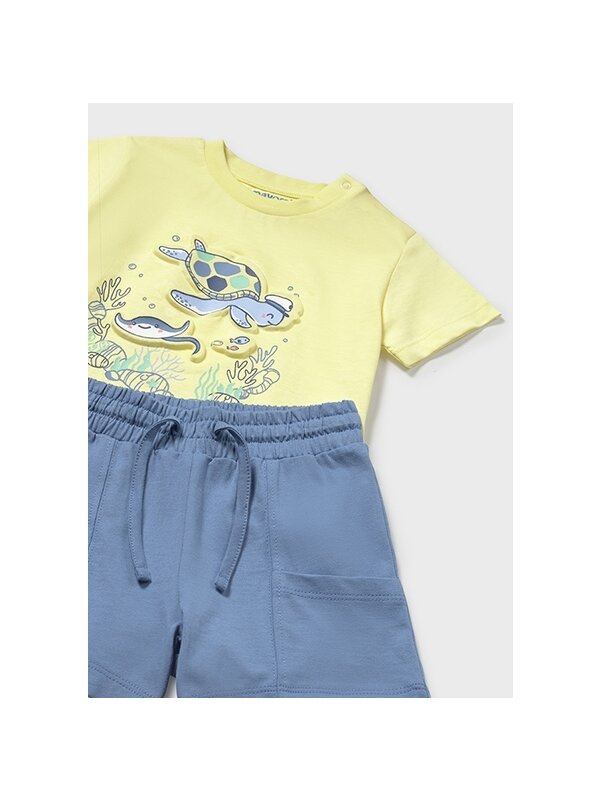 ✔ Tricou galben cu imprimeu cu animale marine – confectionat dintr-un material moale, tricoul aduce un strop de veselie si un plus de culoare in garderoba de vara a celui mic.