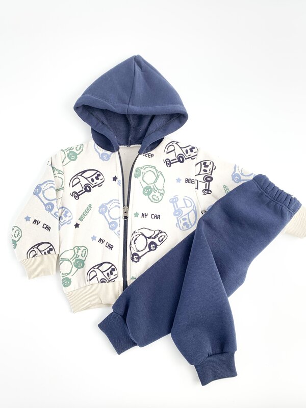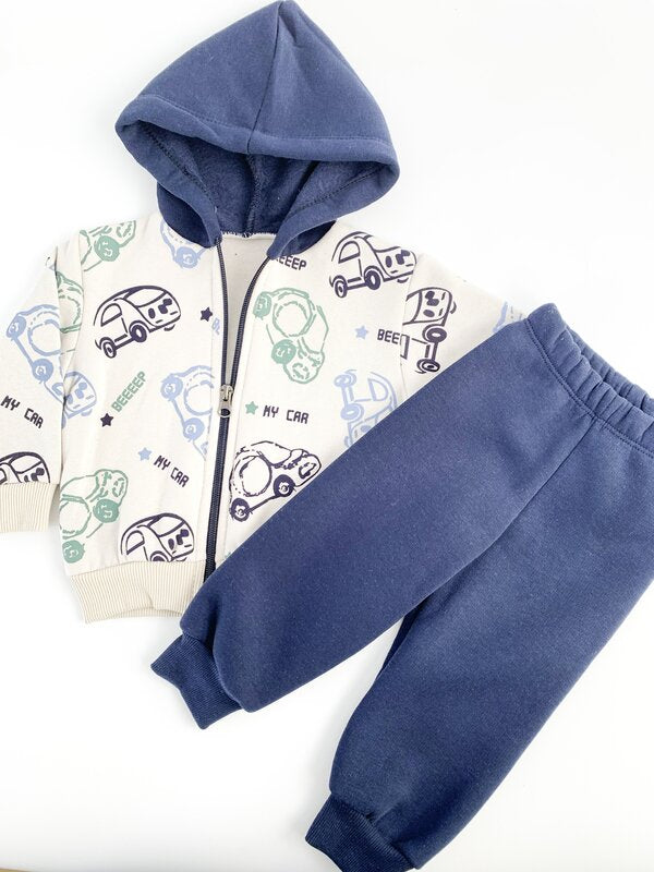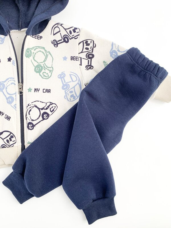 Trening gros copii 2 piese - bleumarin cu masinute
