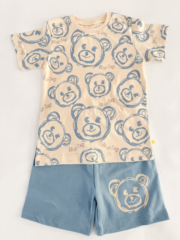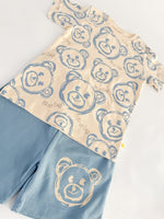 Trening scurt cu ursulet - albastru cu bej