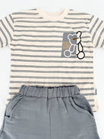 Trening scurt cu ursulet - gri cu bej