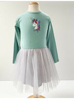 Rochie fetita verde cu unicorn