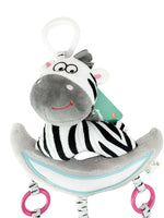 Prevazuta cu un sistem de prindere usor de utilizat, zebra poate fi atasata la patut, carucior, scoica sau locul de joaca, oferind distractie oriunde s-ar afla bebelusul.