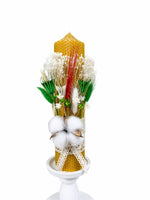 Lumanare botez din ceara de albine, împodobita cu flori naturale uscate si dantela fina.