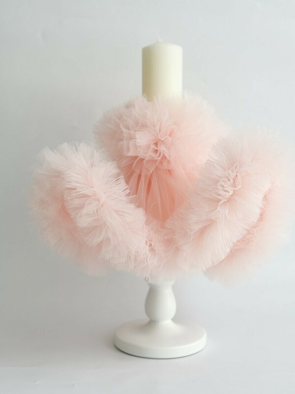 Decorata cu un voal delicat, aceasta lumanare transforma botezul intr-o amintire de neuitat.