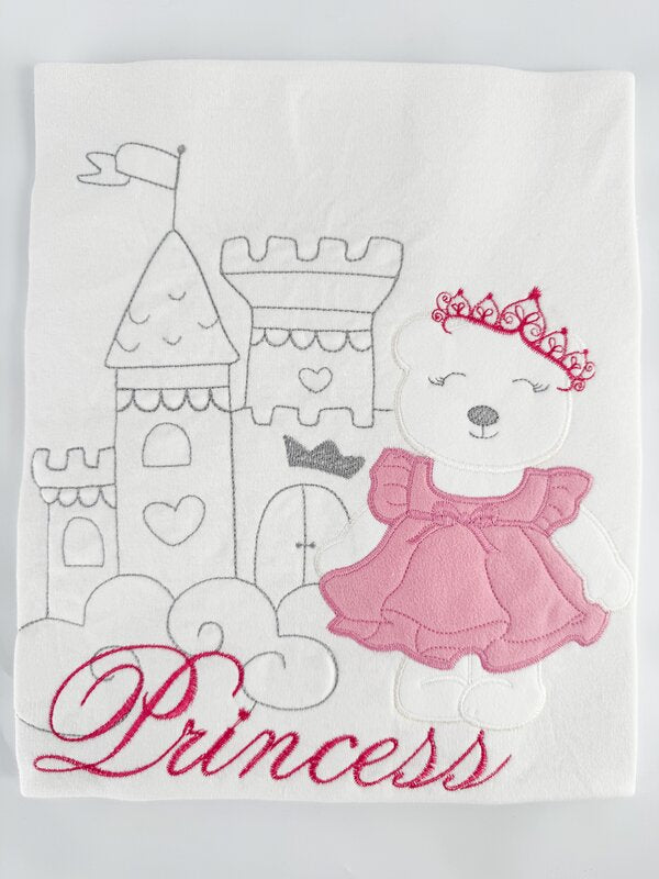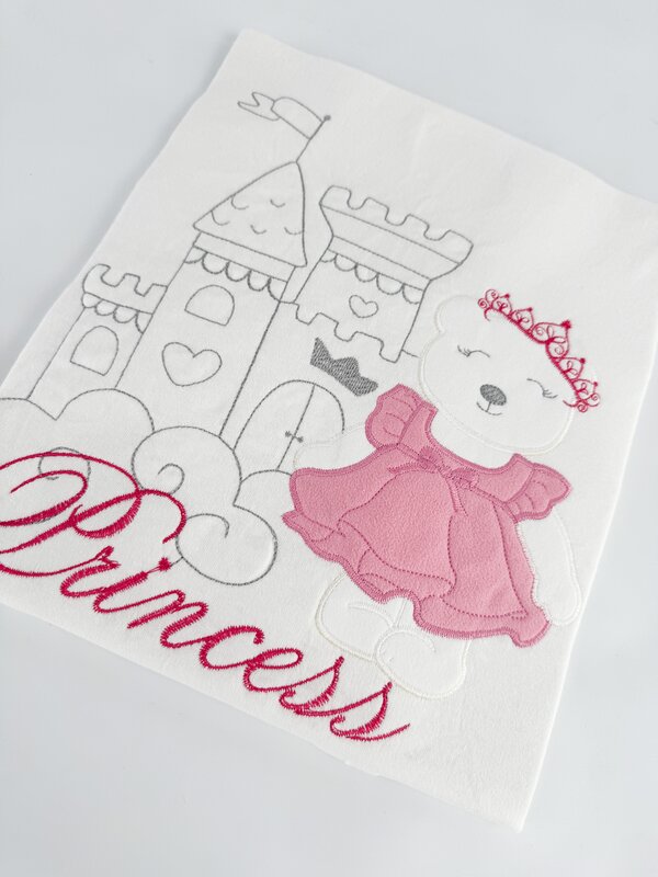 Modelul brodat cu o printesa adauga un plus de farmec, fiind perfect atat pentru camera bebelusului, cat si pentru plimbari.