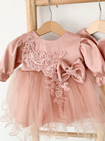 ✔ Rochita roz cu maneci lungi – Realizata dintr-un material delicat si captusita integral cu bumbac 100%, ofera un confort deosebit pe parcursul intregii zile. Dantela brodata aplicata cu grija, perlutele fine si fundita eleganta din talie adauga un farmec aparte, transformand rochita intr-o alegere ideala pentru un eveniment special. Inchiderea cu fermoar la spate este practica si sigura.