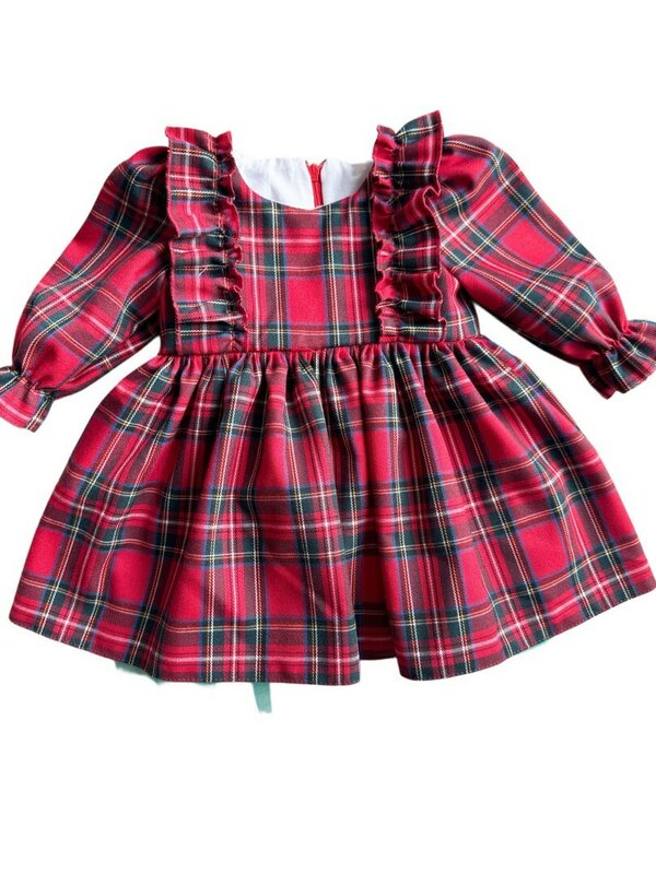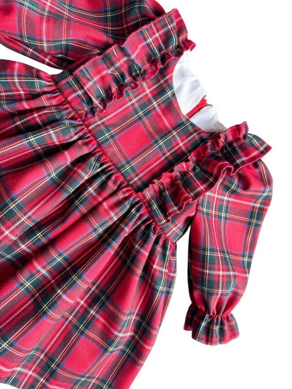 Pret unitar pe- Decorata cu detalii delicate, precum volanase elegante si un model festiv, rochita emana un aer de sarbatoare si veselie. Cromatica sa vibranta, cu accente de rosu si verde, este ideala pentru a aduce spiritul festiv in fiecare moment.