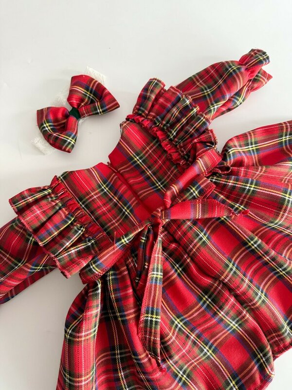 Cu o cromatica festiva de rosu si verde, rochia este perfecta pentru sarbatori.