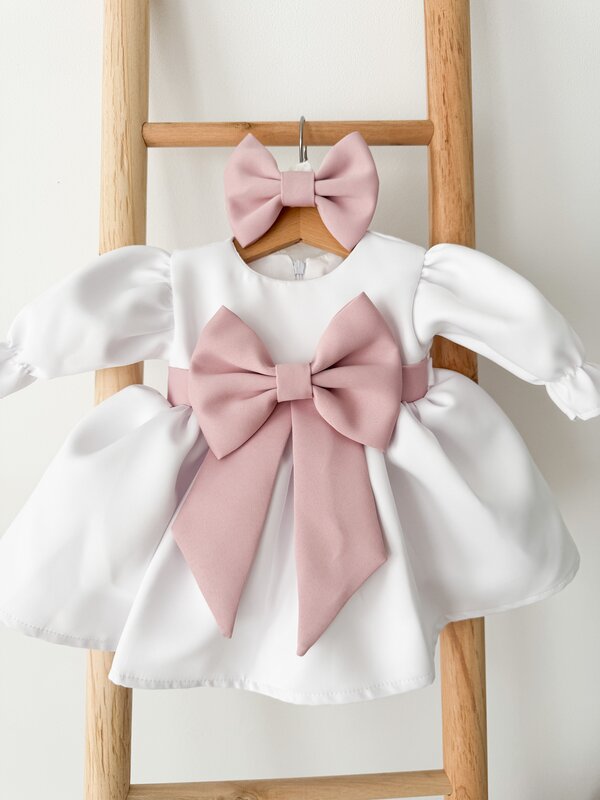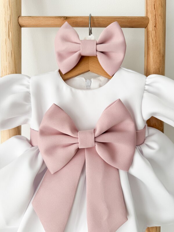 ✔ Fustita ampla – Fabricata din material fin, cu o fundita delicata in talie, aceasta adauga un aer diafan tinutei.