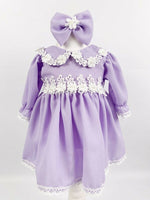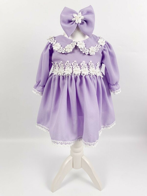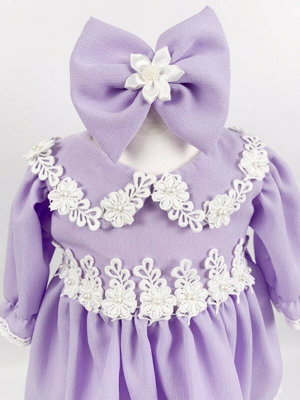 Culoarea lila adauga o nota angelica, iar floricelele minutios aplicate aduc un farmec aparte. Talia este accentuata si ea de multe floricele si perlute.