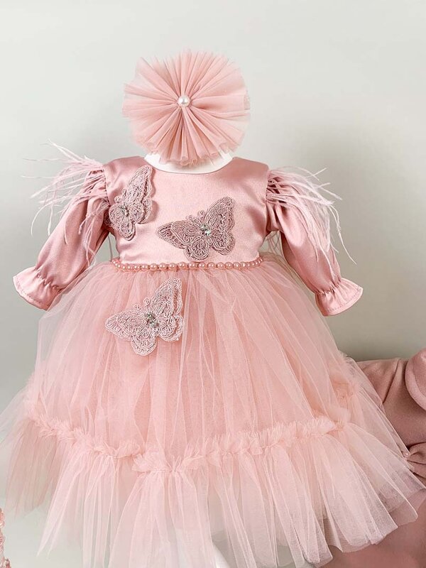Pret unitar peSet botez complet fete,contine(rochie cu fluturi si paiete,pardesiu,bentita+turban,pantofi),iar trusoul pentru biserica contine((prosop preot panza mir,prosop bebe,lumanare,fasa,cutiuta par,sticla,sapun).
