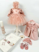 - Palton calduros – Un palton elegant, captusit, ideal pentru a oferi caldura si stil micutei in sezonul rece, perfect pentru evenimente speciale.