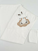 Decorat cu un iepuras brodat, adauga un plus de gingasie si transforma fiecare moment de ingrijire intr-o experienta speciala si plina de tandrete.