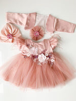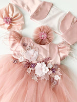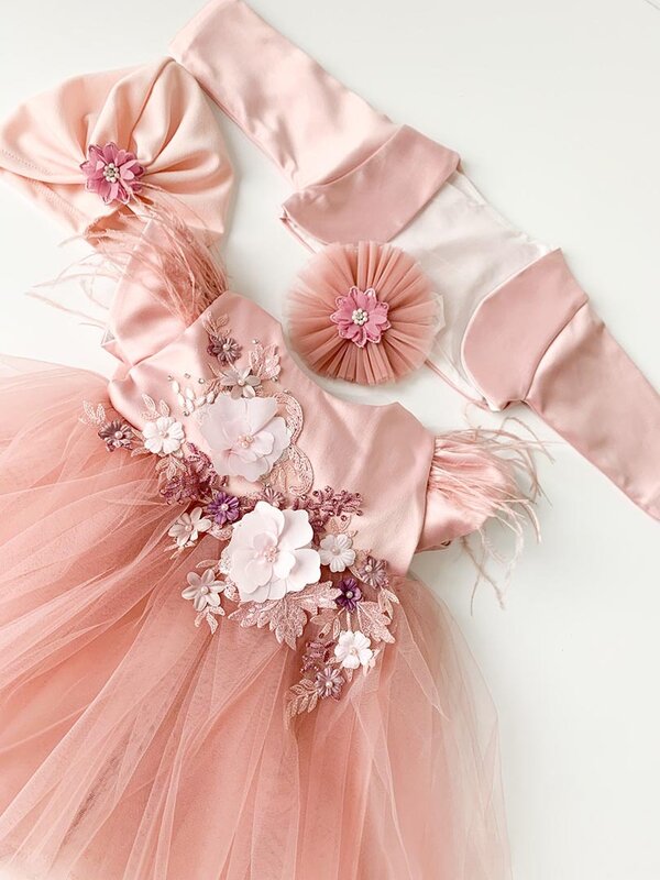 Setul contine rochita, bolero, turban si bentita .