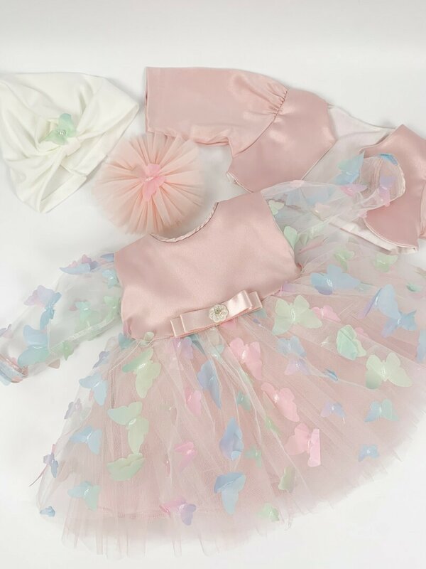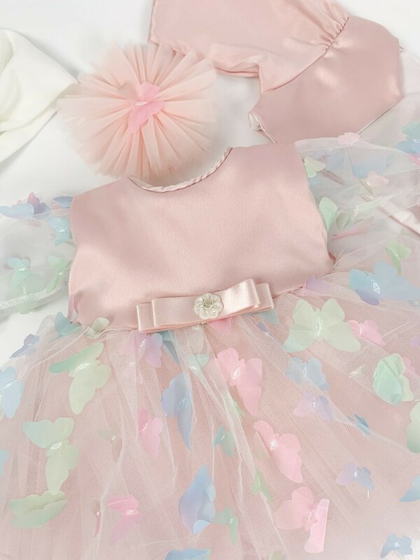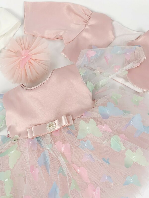 Culoarea roz pal adauga o nota angelica, iar fluturasii minutiosi aplicati aduc un farmec aparte.