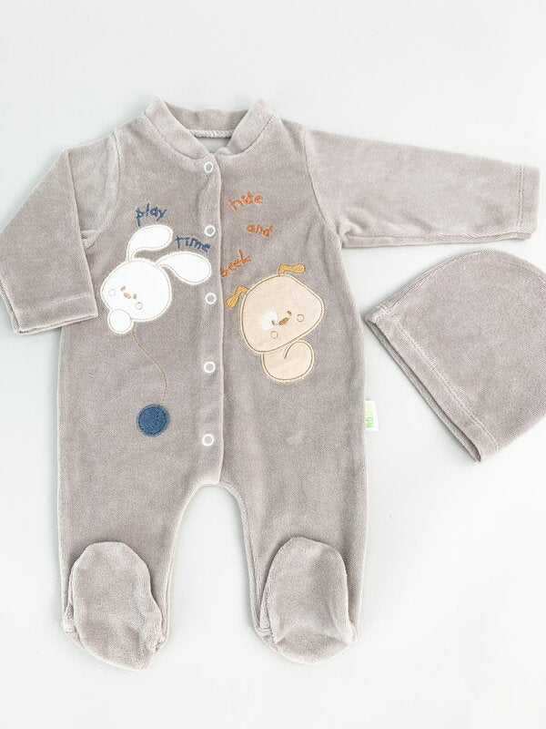 Aceasta salopeta bebelusi maro cu caciulita este ideala pentru plimbari in parc, joaca, somn sau zilele friguroase de toamna-iarna, fiind totodata si o idee de cadou perfecta pentru nou-nascuti.