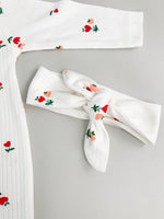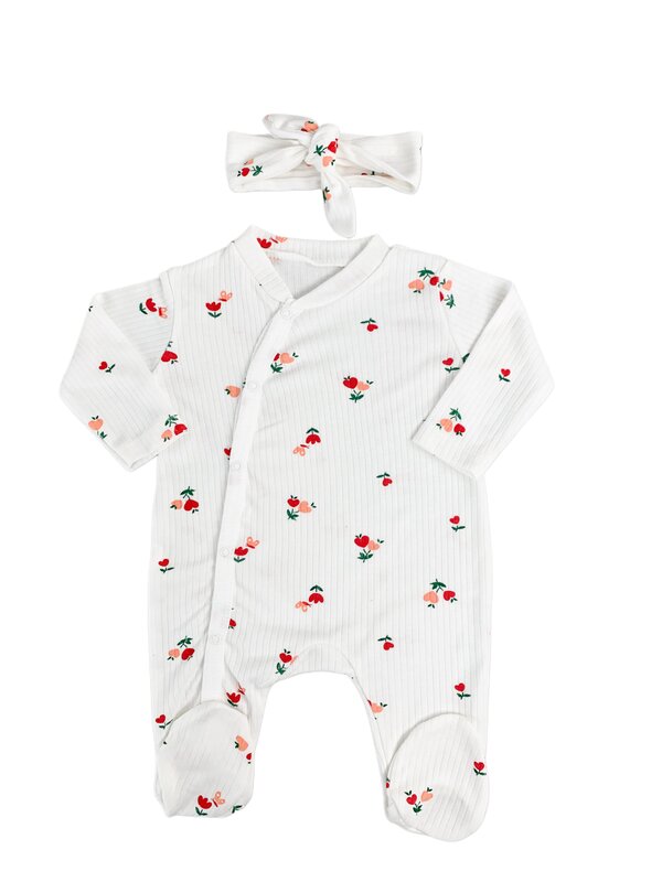 Salopeta fetite alba cu flori si bentita - 2 piese