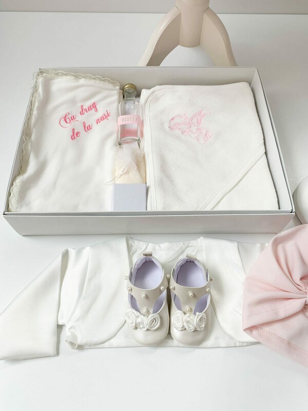 Trusoul este alcatuit cu grija si iubire, oferindu-i micutei toate elementele necesare in aceasta zi deosebita.