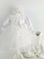• O rochita eleganta, confectionata din bumbac de calitate superioara, cu maneci lungi, ideala pentru zilele racoroase. Rochita are inchidere cu fermoar, asigurand o potrivire confortabila si usoara, iar captuseala din bumbac moale ofera un plus de confort pe durata intregii ceremonii.