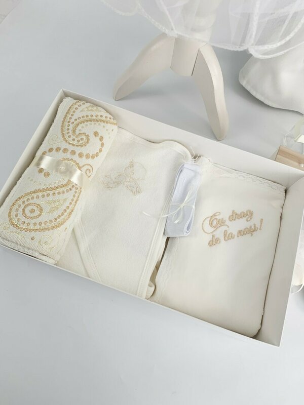 Toate aceste elemente sunt prezentate intr-o cutie speciala, cu capac transparent, pentru a pune in valoare frumusetea fiecarui detaliu si a crea o amintire de neuitat.